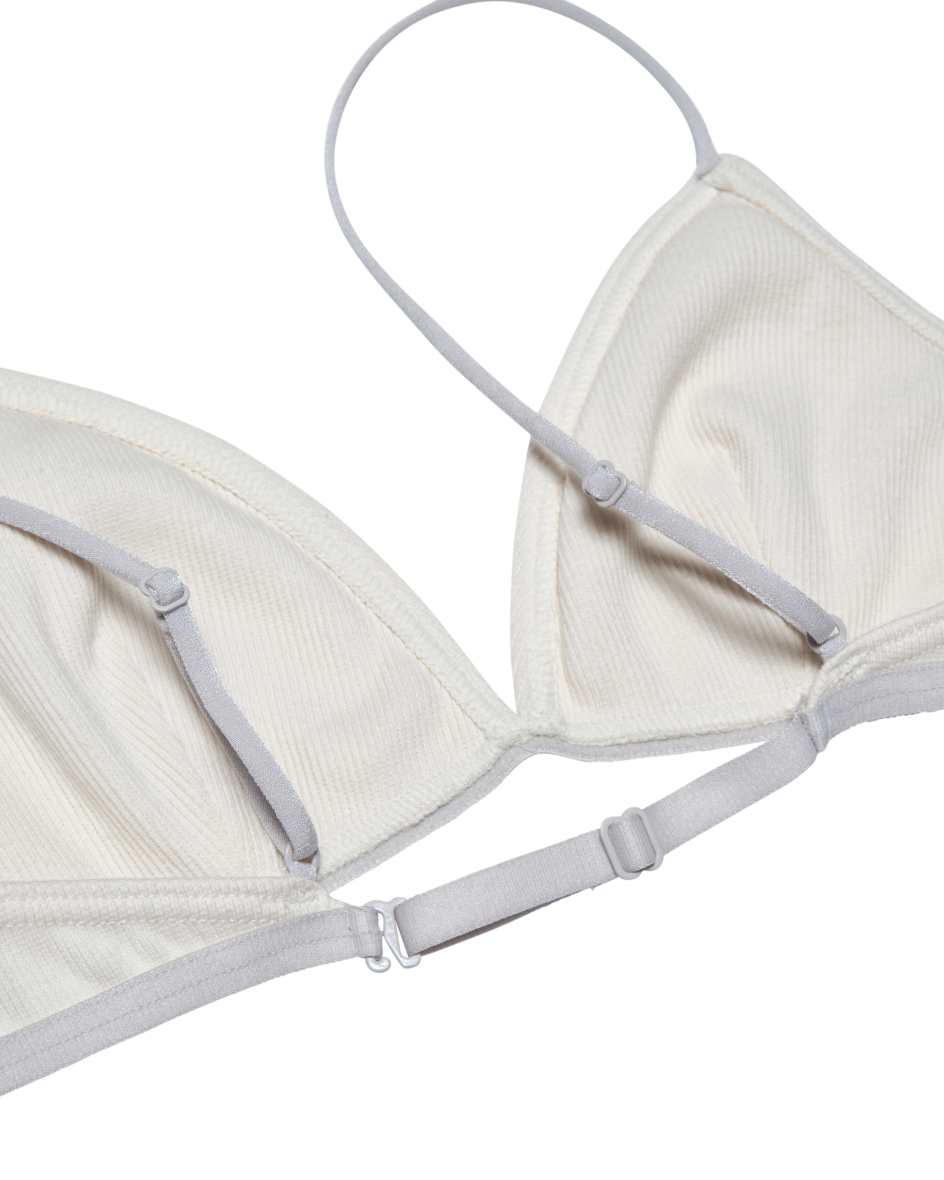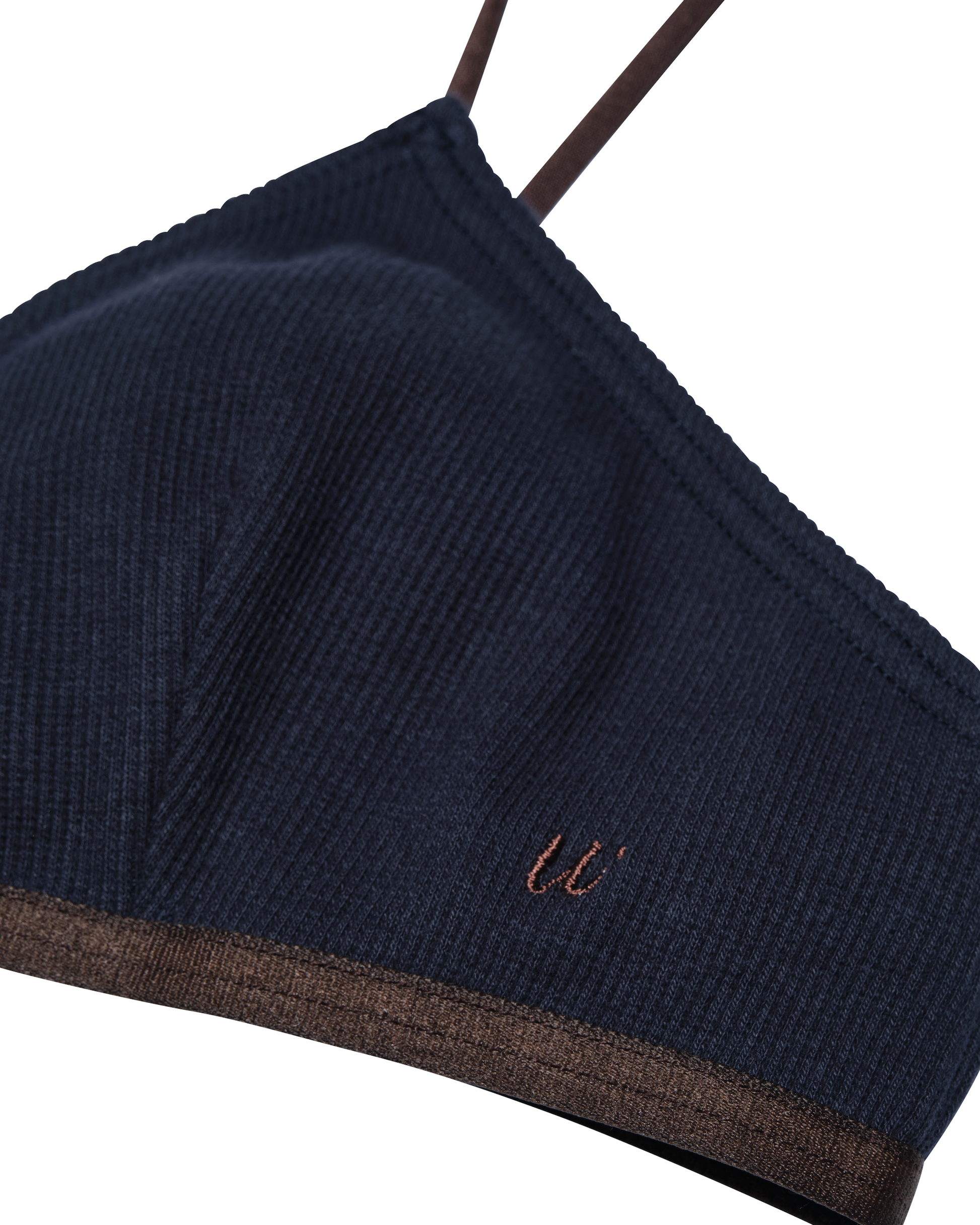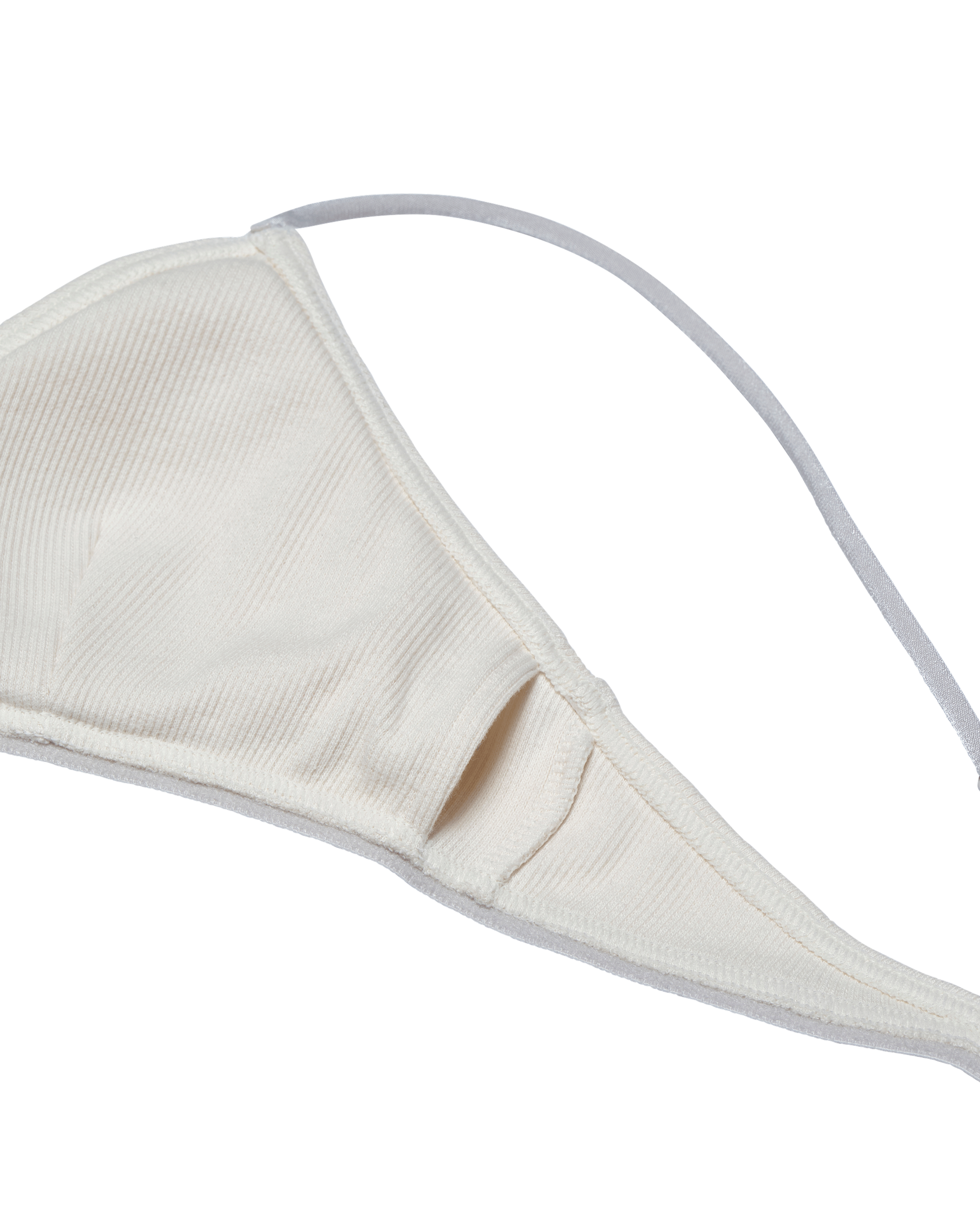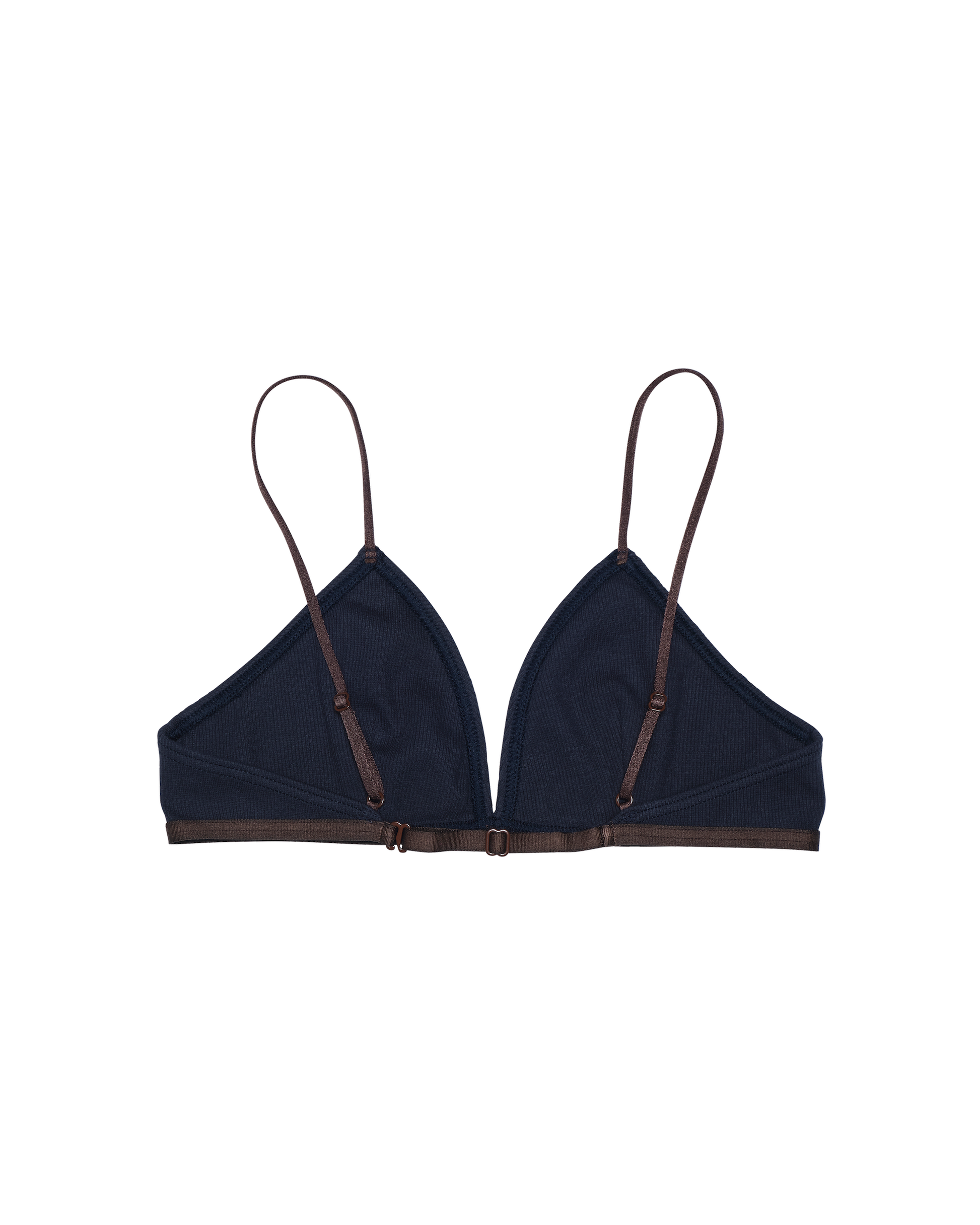 ヘルシーな印象のトライアングルブラでトップスとのレイヤードも楽しめる一枚。伸縮性のあるコットンリブ素材を使用しています。